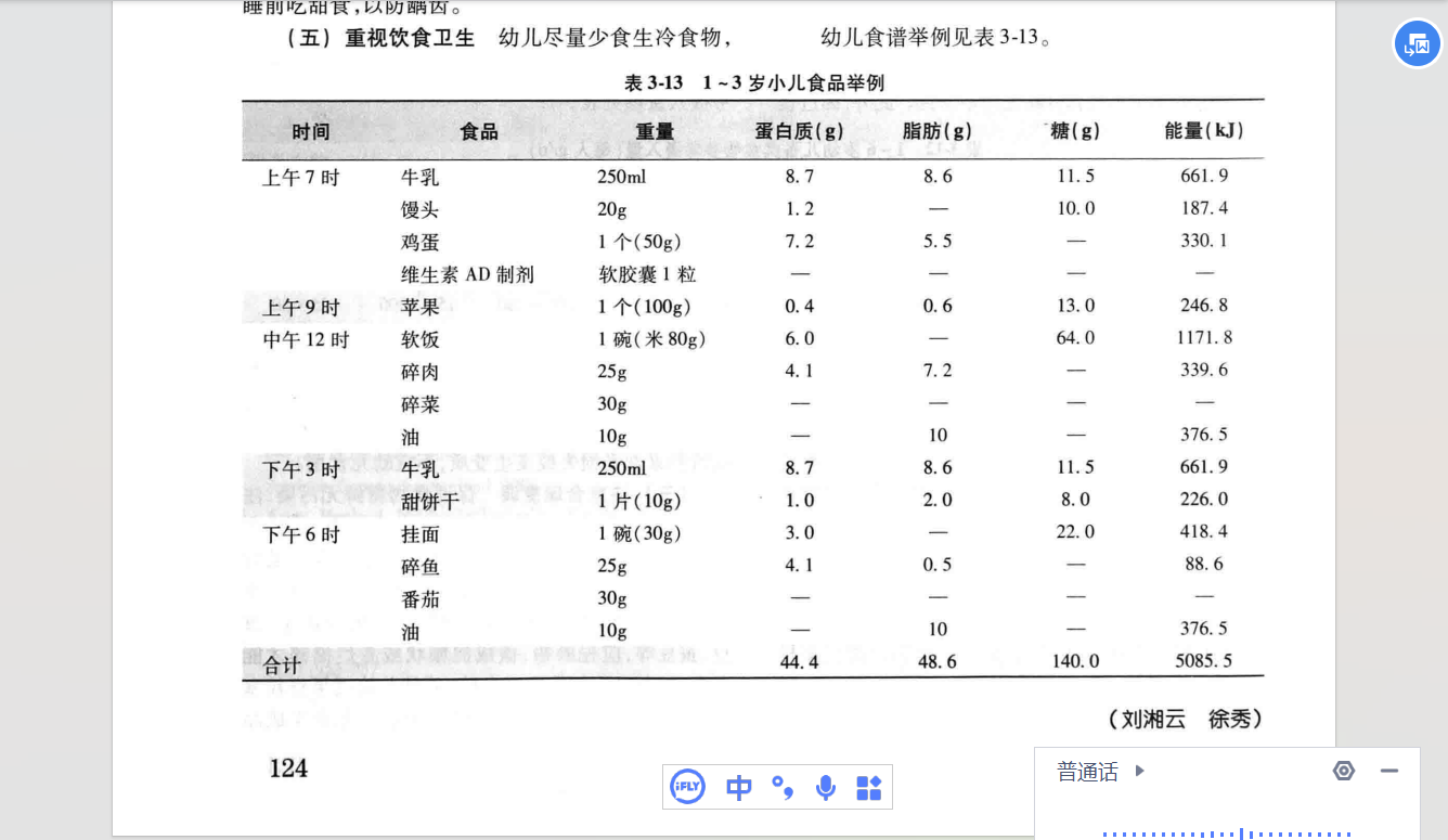 不同月龄婴幼儿食谱举例