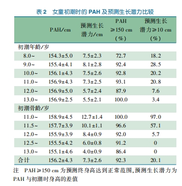 初潮后预测终身高(PAH)的临床评估方法