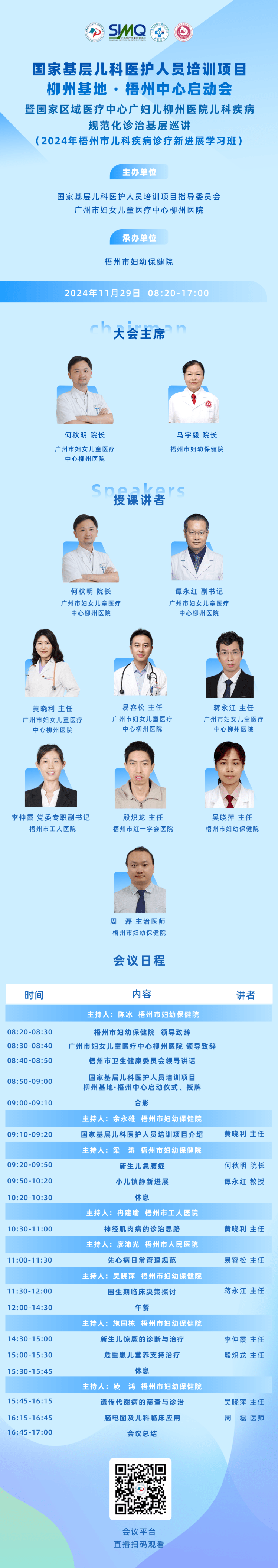 08:50-09:00柳州基地·梧州中心启动仪式、授牌国家基层儿科医护人员培训项目